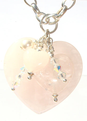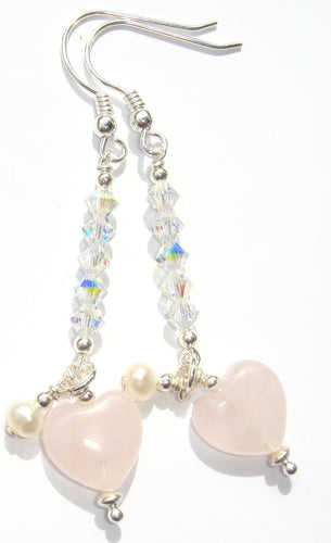 Freya Rose Quartz Heart with Pearl on Swarovski® AB Crystal Tower Earrings